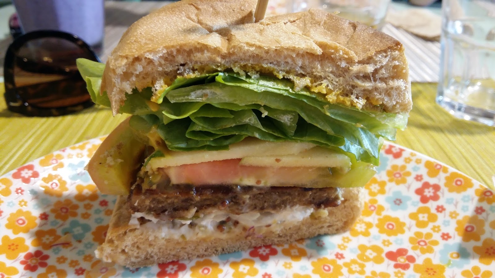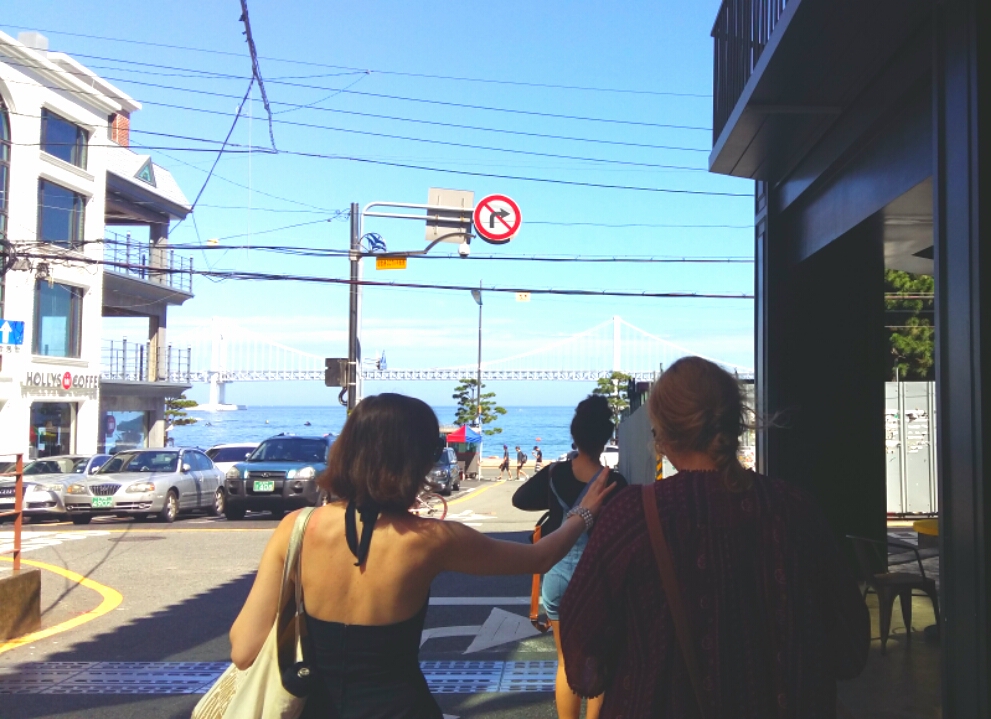 The next day I woke up late and it was a scorcher.  We were concerned as there was still a typhoon warning in effect.  Waking up Saturday morning was more uncomfortable than I’ve been in a while.  Summer heat in Korea is hotter than hell.  Regardless, I got a workout in without AC, then headed down to Gwangalli to meet up with some gal pals.  We had a vegan lunch at “Jack and the Beanstalk”.  Get off at Geumnyeonsan station exit 5 (I think) and head straight a couple of blocks, turn left, walk a couple of blocks and you’re there.  The food takes an eternity, but it’s pretty good if you’re looking for lots of veggies at a reasonable price.  We shared a salad and a veggie burger but the real winner was the vegan bulgogi bibimbap with tons of tasty mushrooms and cabbage (GET THAT if you go.  It was soooooo goooood).  After that we rolled down to the beach, put on TONS of sunscreen and rocked out to good beach vibes and great tunes c/o S.