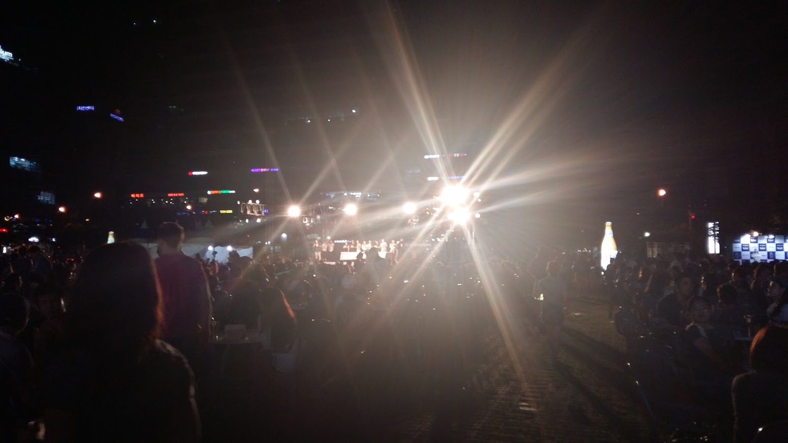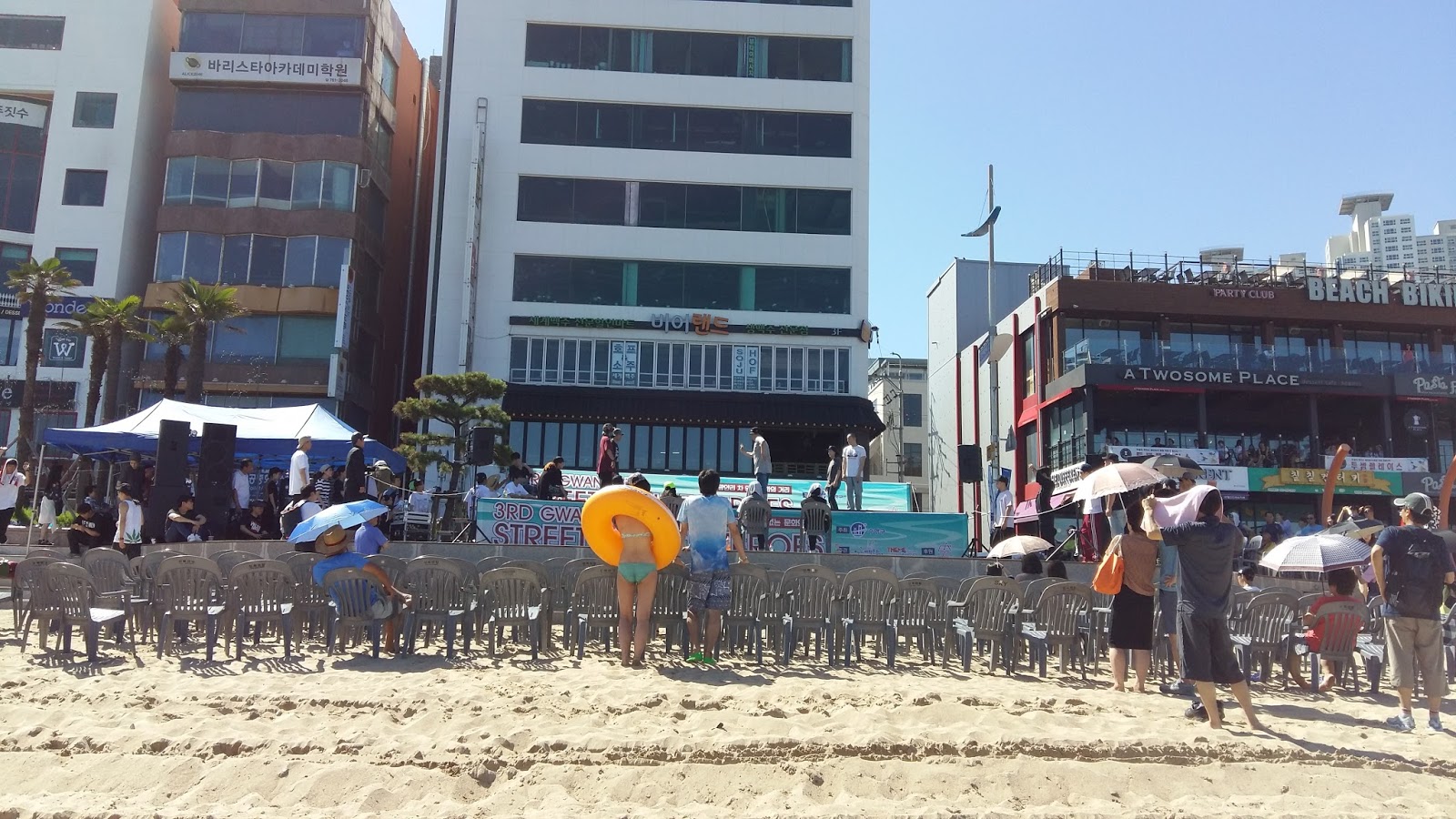 Later, I think I spent 3 hours in the water watching a dance competition and swimming to the lifeguard limits.  We lucked out and got to watch The Dudettes perform live in a lovely (because it was both awesome and early) 7 PM set at Sharky’s Bar Gwangan.  It’s not my favourite location because the food and drinks are overpriced even for the area and the food tends to be a little disappointing.  That said, we had a front row table to enjoy good company and great music.