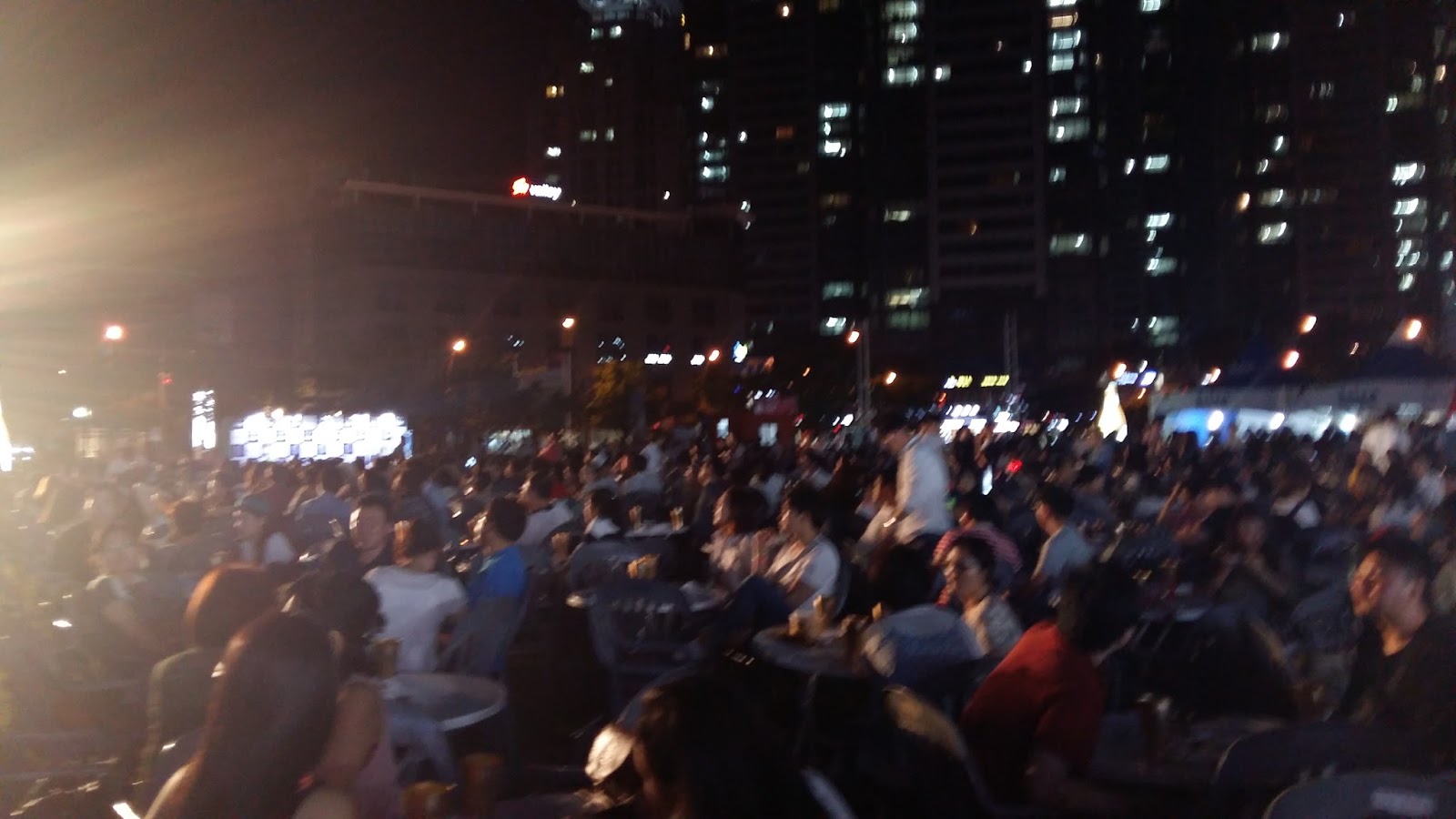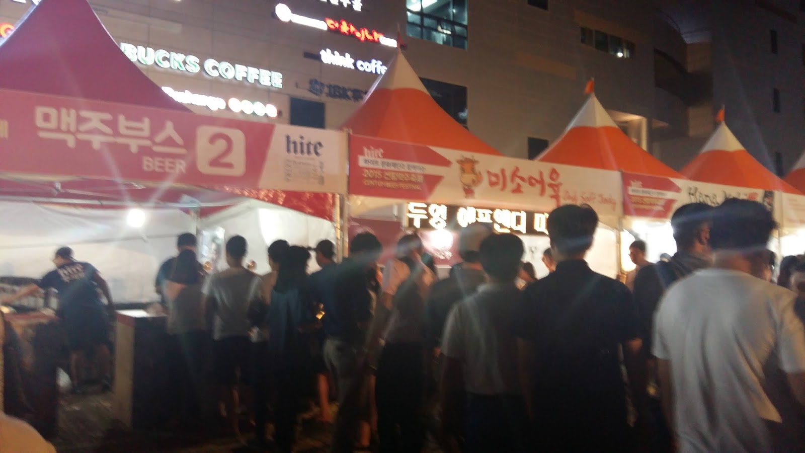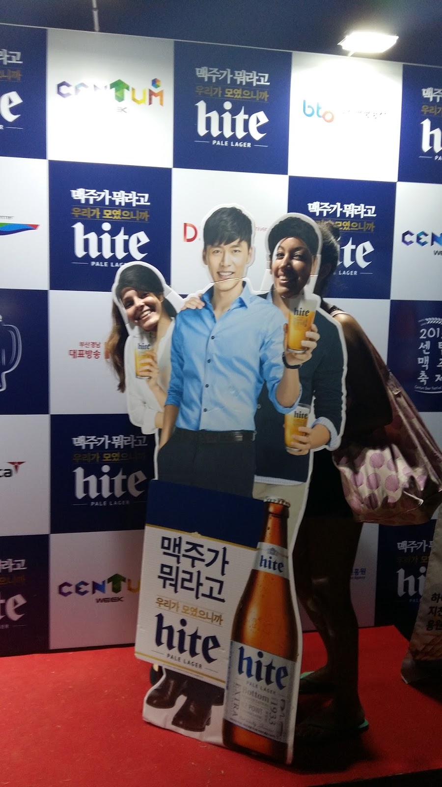 After a phenomenal dinner we hailed a cab and ventured over to Centum City Week’s Beer Festival (sponsored by Hite so the only beers were Hite and Max).  For $10 we were given a golden chalice and the opportunity to down as much beer as we could before 10 PM.  Seeing as it was already past 7PM and the line would.not.budge we had our concerns.  The performances seemed cool from the outside but nobody knew why we weren’t moving.  Turns out there was no seating left.  A gentleman in a formal suit wandered through the crowd (after about a 40 minute wait) to deliver this news.  At this point I was pretty irritated and blurted out: “I don’t care.  We can stand!” and so we did.  They gave all of us wristbands and let us in.  I drank my first beer in the time it took them to pour my friend’s beers (sorry, Mom!), and with appropriate libations we were on our way to check out the tents.  There was tons of local food and even some international food from Centum City Mall’s food court.  We danced to the K-Pop music, bumped into other expats, and played some games they had set up.  It was pretty tame.  Eventually we found seating and just relaxed and chatted.  A festival? Not quite.  A good night?  Definitely.
