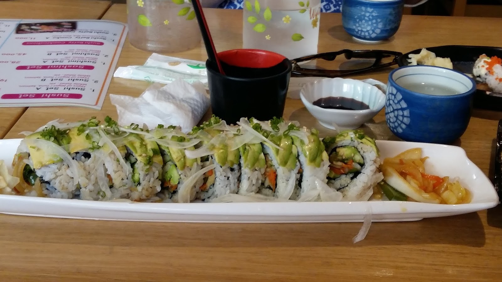 We really only had a couple of hours at the beach before we were slated to meet up at Sushi Berry.  This is one of my favourite places in Busan.  A tiny restaurant that actually serves up North-American style rolls with amazing service?  I’m all over it.  The chef is so kind – he chats with us like we’ve been friends forever (I’ve only been twice now) and he made an amazing vegetarian roll for our friend.  One note – if you’re not into onions make sure to ask for your roll without ’em.  A couple of the bigger rolls come covered.
